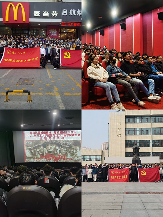 为纪念中国人民志愿军抗美援朝出国作战70周年,弘扬伟大抗美援朝精神,进一步提升“四史”教育的实效性与感染力,能动学院学生党总支于12月6日组织全体学生党员到倚能假日影城观看爱国主义题材电影《金刚川》,开展“弘扬抗美援朝精神,厚植爱国主义情怀”主题党日活动,追忆抗美援朝往事,致敬最可爱的人。