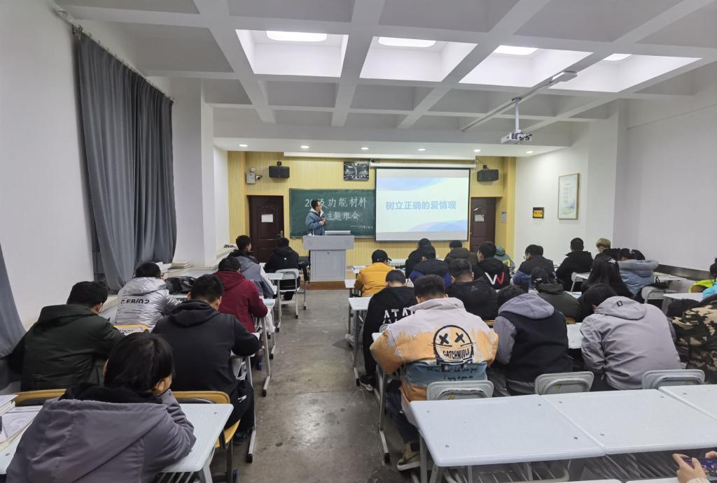 12月初,材料学院组织开展2020级新生“树立正确的爱情观”主题教育,此次主题教育以各班级为单位进行,各班主任主持,全体同学参加。