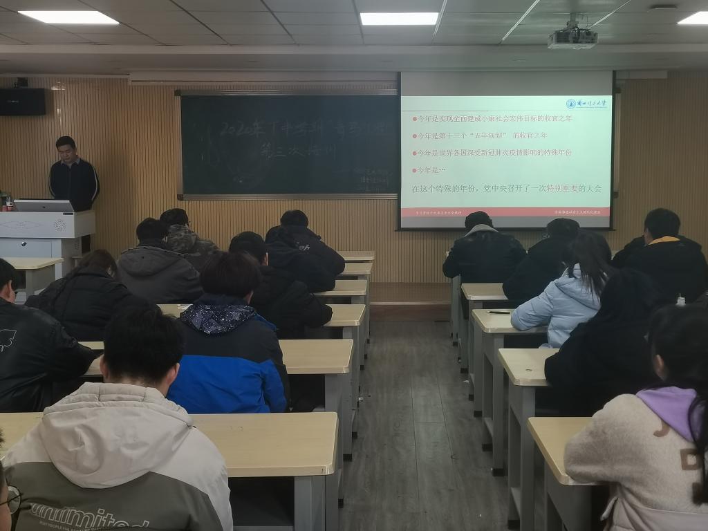 12月8日,设计艺术学院在琢玉楼教室举行了2020年秋季“青马工程”第三次培训,邀请马克思主义学院杨亚雄博士作十九届五中全会宣讲。