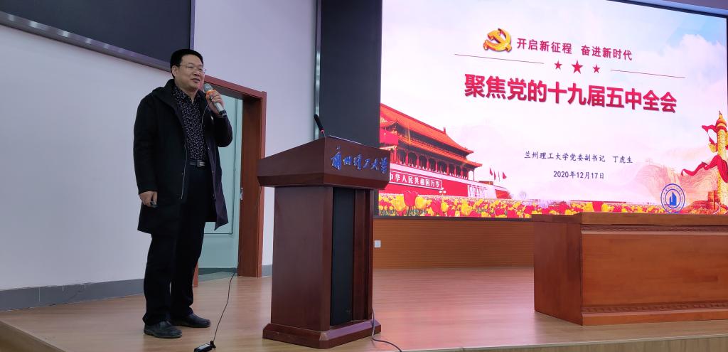 学校党委副书记丁虎生为材料学院党员师生宣讲党的十九届五中全会精神