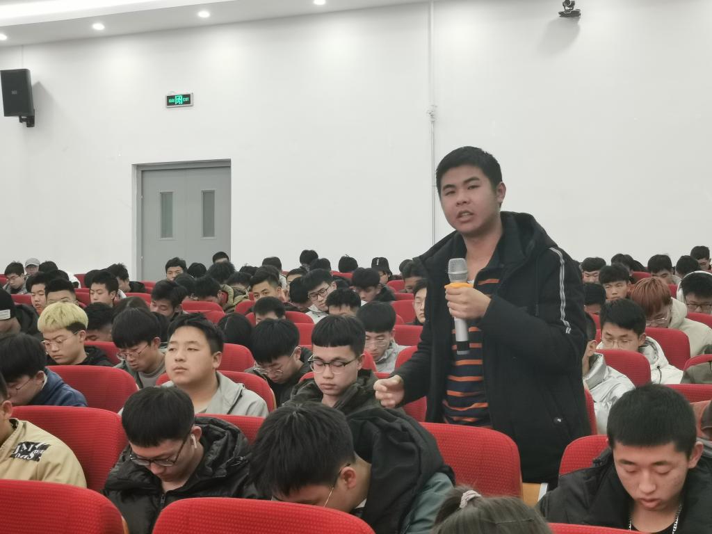 唐洪川主任首先为同学们做了国防教育专题报告,解读了国家、甘肃省大学生征兵入伍的激励政策,深刻阐释了国防建设的重要性。并为同学们详细介绍征兵入伍的基本情况,从征集时间、征集条件以及体格条件三方面为大家讲解,包括报名的七大步骤,为同学们算了一笔“政治账”、“经济账”、“成才账”和“发展账”。唐主任号召同学们积极响应祖国号召,踊跃参军报国,把青春梦融入强军梦,在推进强军梦的征程中,为实现中国梦贡献自身力量。他强调:“好儿女,当兵报国;大学生,军营建功!”唐主任在本次讲座中以激情澎湃又不失幽默的语言,深入浅出的讲解,使会场的同学不仅对国防有了深刻的理解,更拓展了视野,增长了见识,极大的激发了同学们的爱国热情和立志成材报效祖国的决心。唐主任与同学们互动交流,解答了同学们的疑惑之处。18级优秀退伍大学生肖生祖和蒲文斌同学分别为同学们分享了参军入伍的部队生活经历,表示在部队可以锻炼同学们勇挑重担、吃苦耐劳的意志品质,又可以培养锐意创新、与时俱进的精神风貌,体验部队生活,丰富人生经历,通过亲身经历让同学们更加全面的了解军队生活。