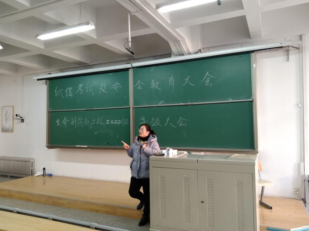 12月30日,根据学据学校《关于2021年元旦放假的通知》学风建设工作要求,生命学院在彭家坪区教室分别举行2018级、2019级和2020级元旦假期出行安全和诚信考试教育年级大会,分别由年级辅导员代莎和唐爱丽主持会议。