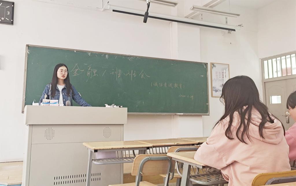 为提高同学们的诚信考试意识,培养诚信教育思维,积极推进班级诚信学分建设,3月25日,经济管理学院20级金融学一班在彭家坪校区集贤楼201教室开展了“诚信教育,诚信考试”主题班会,班会由班主任醴静老师主持,全体同学参加。