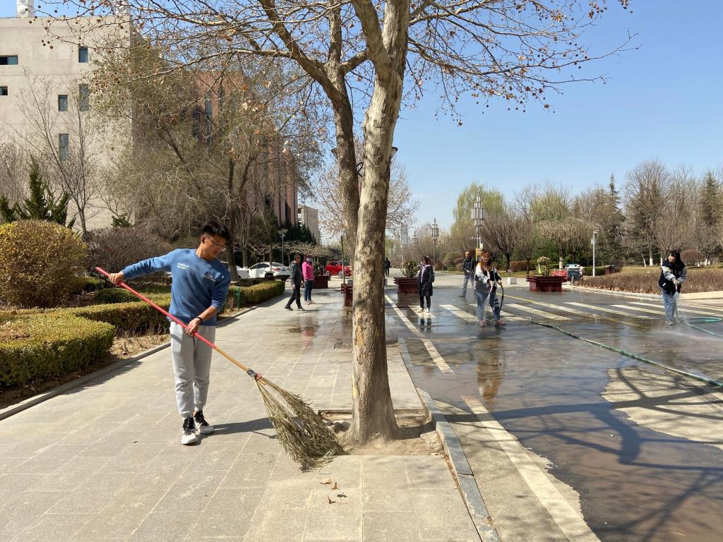 由于前几日的沙尘天气,使得校园被浮尘所笼罩。为了减轻学校后勤环卫工人的工作负担,让校园恢复往日的清新明朗,让学生党员深切体会和践行雷锋精神,让更多同学加入到爱校护校的行动中来,财务管理本科生党支部与学校后勤管理处联系,开展此次公益劳动,支部全体成员在体验劳动的同时增强了责任意识。
