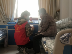 志愿者们还前往敬老院去看望那里的老人,在敬老院里,志愿者们看到了许多的坐在门口的爷爷奶奶,仿佛每位爷爷奶奶也都期盼着志愿者们的到来。在负责人的安排下,每位志愿者认认真真地为老人们打扫了床头柜的卫生,叠整齐了床被。收拾整理好老人们休息的地方后,志愿者们与爷爷奶奶们问好聊天。爷爷奶奶们给志愿者讲自己年轻时的故事,在老人中有一位77岁的张奶奶与她的先生丁爷爷,丁爷爷在三十年前腿部截肢,一直都是张奶奶在细心照顾着爷爷,不离不弃。在与志愿者的聊天中,张奶奶一直重复着:"跟你们聊过后,我要好好活下去。"那一刻一切志愿活动都有了意义。在分别的时刻。张奶奶紧紧攥着志愿者的手,不舍地与志愿者们道别。志愿者们从爷爷奶奶身上了解了许多故事与道理,也在志愿服务中成长了自己。陪伴对每一个老人都是重要的,青年志愿服务队的志愿者们一定会将志愿服务坚持下去。