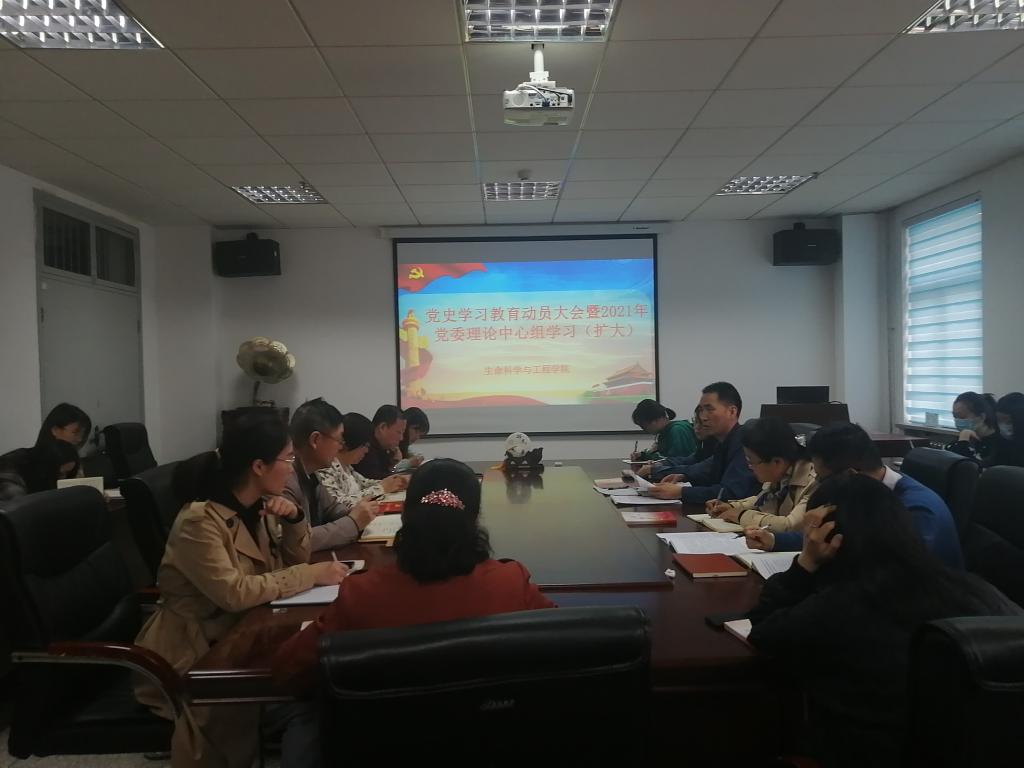 近日,生命学院党委在综合实验楼B1029室召开生命科学与工程学院党史学习教育动员会暨2021年党委理论学习中心组学习会(扩大),学院领导、党委委员、各党支部书记和学生支部委员参加了此次会议,会议由学院党委书记陈永泰主持。