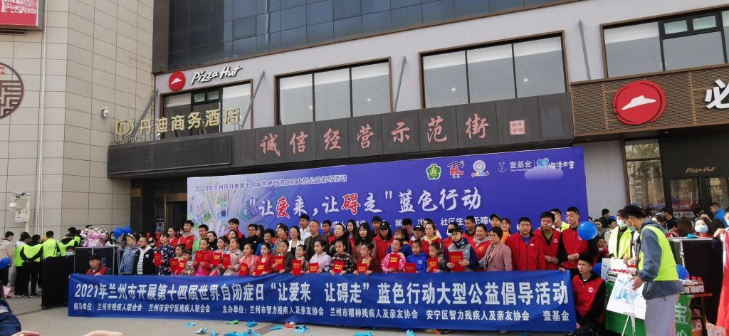 同时,学院组织志愿者参与在安宁区金牛街举办的兰州市第十四届世界自闭症日大型公益倡导活动,与全市几十家志愿者团体一起合作宣传,围绕“让爱来,让碍走”的活动目的,开展志愿服务活动。
