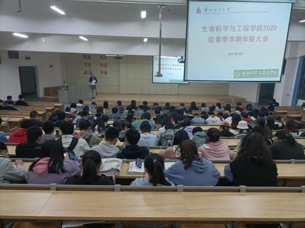 为保证新学期教学工作的正常进行,充分调动同学们的积极性,生命科学与工程学院于2021年4月1日12:00和18:40分别在西教蔚云楼405教室和西教集贤楼108教室举行年级大会。参与大会的有辅导员老师代莎和唐爱丽,20级、19级、18级全体同学。