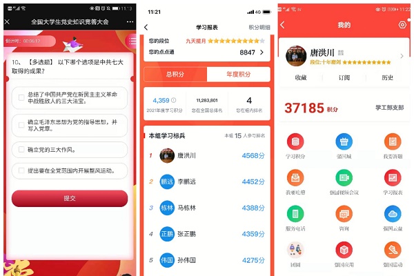 为充分利用好碎片化时间,通过点滴积累、日益精进,让每一位党员都有所收获,把学习教育的作用真正发挥出来。学工部党支部鼓励要求全体党员群众,以“学习强国”“甘肃党建”等学习平台作为每日学习必修课,助推党员教育活力;开展“中国大学生在线党史知识现场竞答”主题党日活动,激发党员学习热情,提升党员理论素养;印制张贴“再征程·重走信仰之路”百年党建历程图解宣传海报,重温建党100周年以来党的光辉历程。