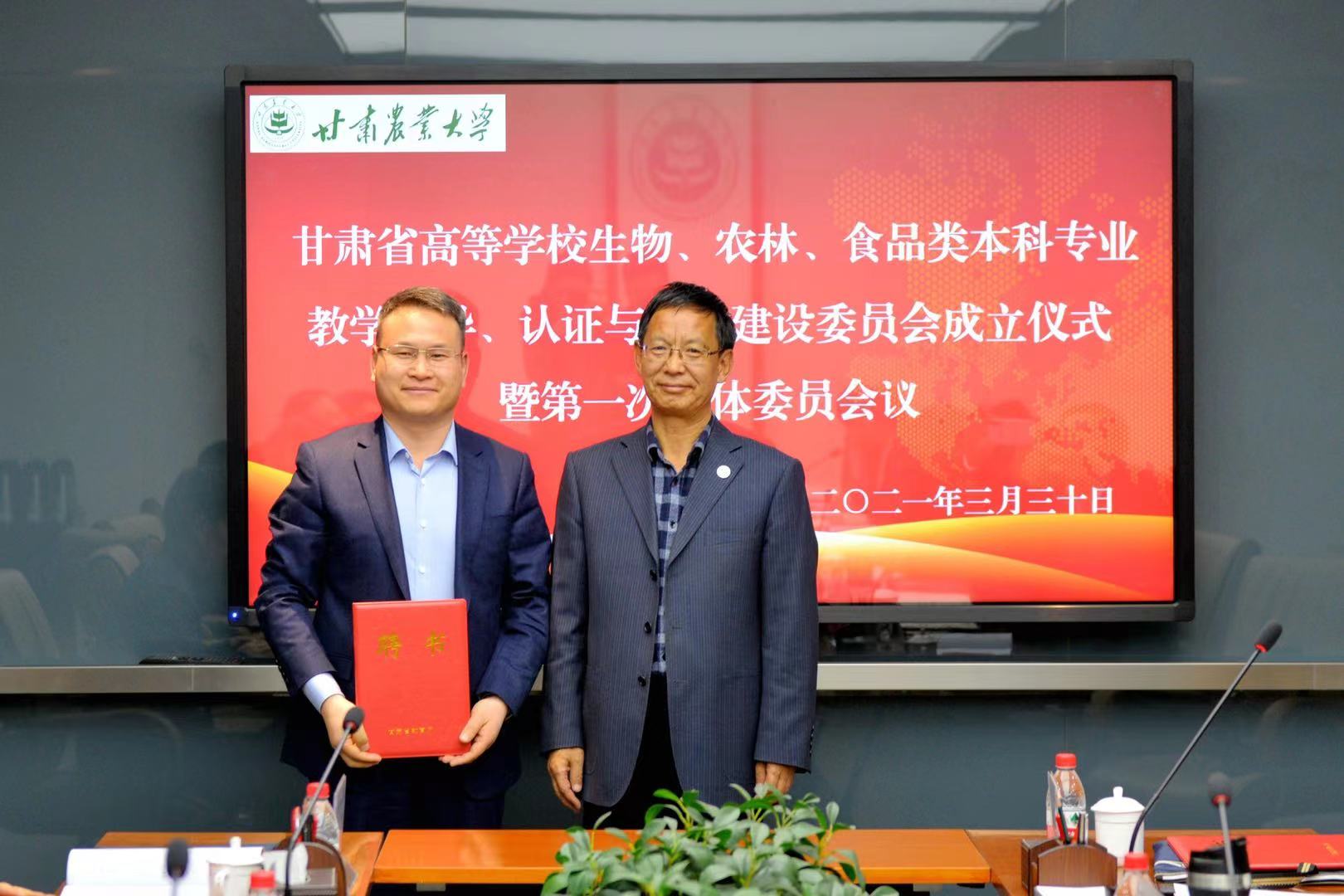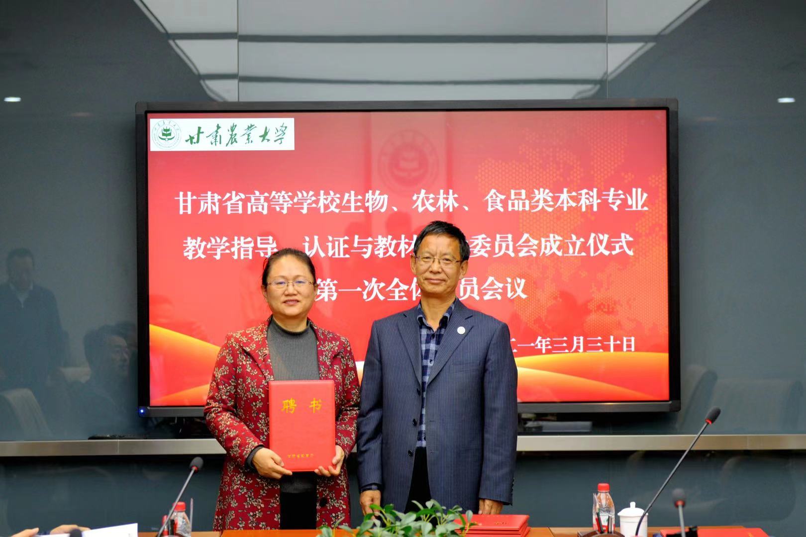 3月30日下午,甘肃省高等学校生物、农林、食品类本科专业教学指导、认证与教材建设委员会成立仪式暨第一次全体委员会议在甘肃农业大学举行。生命学院院长伍国强、食品科学与工程系教师赵萍作为委员参加了聘任仪式暨第一次全体委员会议。