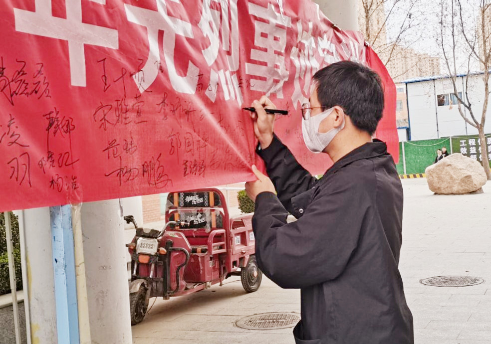 活动初始,经济管理学院新华珍珠社的社员们给同学们发放了一份有关革命红色故事的问卷,并积极引导同学们深入了解革命先烈的生平事迹,引起了同学们内心深处强烈的情感共鸣。“清明时节雨纷纷,路上行人欲断魂”,冷风习习,但参与者们热情高涨,饱含着一腔爱国情。最后,参加活动的同学们在志愿横幅上签上了自己的名字,此次活动圆满结束。