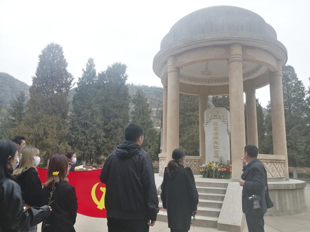 由支部书记齐伟建同志讲解王学礼、罗云鹏等先烈的事迹,全体同志认真聆听学习,党员代表敬献鲜花。
