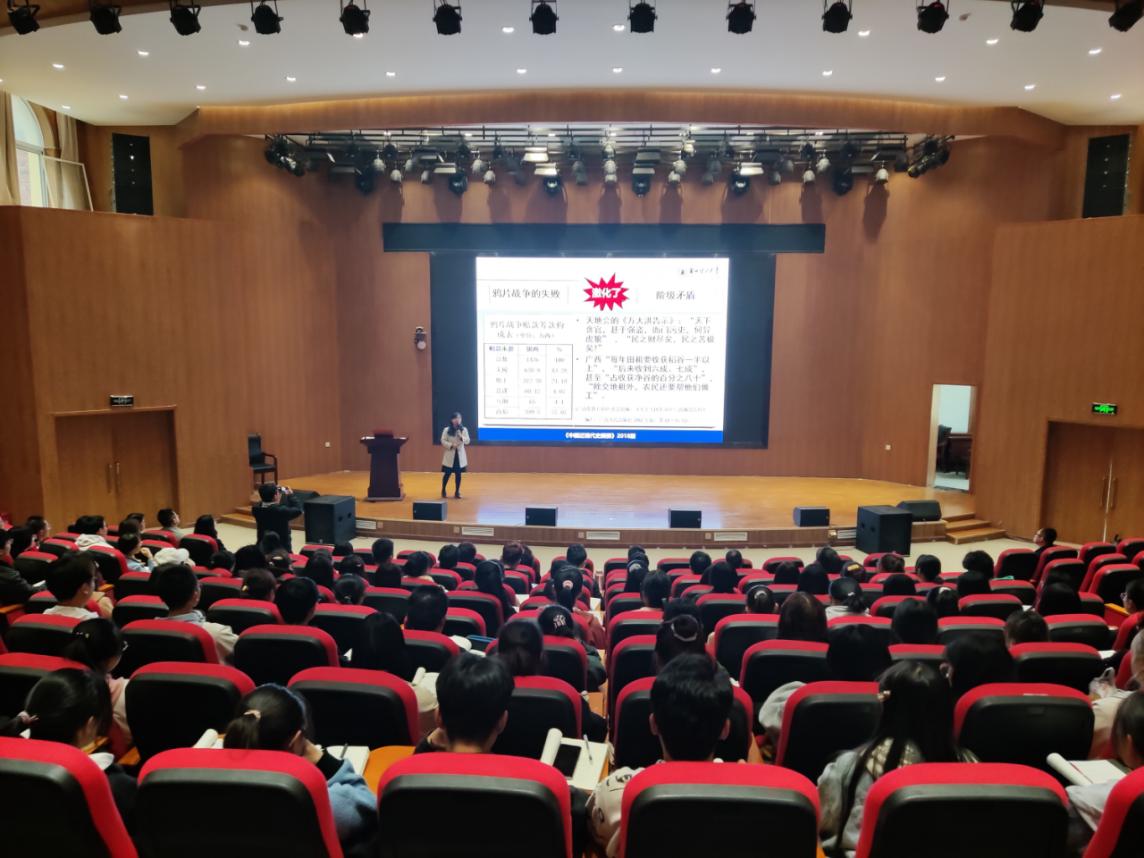 此次活动分两个阶段进行。第一阶段是示范教学。解梅副教授就《中国近现代史纲要》课程第二章第一节内容“农民群众斗争风暴的起落”进行了教学示范。解梅副教授从太平天国农民战争与农民斗争的局限和意义两大方面着手,详细讲述了太平天国起义的背景、洪秀全与拜上帝教、太平天国农民战争的发展进程、《天朝田亩制度》和《资政新篇》的主要内容、太平天国农民起义的历史意义、起义失败的原因和经验教训。解梅副教授课堂讲授思路清晰、环节紧凑、层层递进、娓娓道来,吸引了广大师生的注意力。
