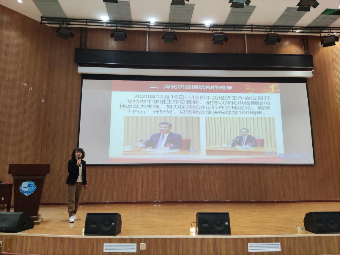 李明珠副教授就《毛泽东思想和中国特色社会主义理论体系概论》课程第十章第一节内容“深化供给侧结构性改革”进行了教学示范。李明珠副教授从“是什么”“为什么”“改什么”“怎么改”入手,运用大量生动鲜活的案例,重点从推进动能转换,以加快发展先进制造业为重点全面提升实体经济;深化要素市场化配置改革,实现由以价取胜向以质取胜的转变;加大人力资本培育力度,更加注重调动和保护人的积极性;持续推进“三去一降一补”,优化市场供求结构四方面详细讲授了如何深化供给侧结构性改革。李明珠副教授通过深入浅出、以点带面、循循善诱的方式,为兰州信息科技学院学生和思政课老师们带来了一堂生动有趣的思政课。
