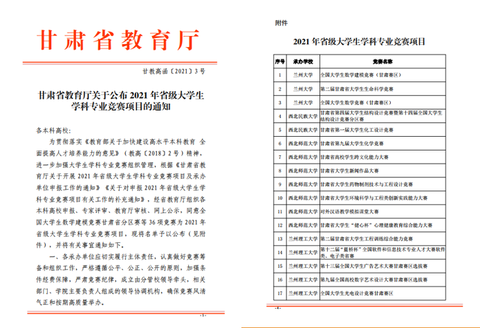 第九届全国高校数字艺术设计大赛组委会,鉴于我校在第八届大赛中获得的优异成绩。同时考虑到我校在本地较高的学术影响力以及丰富的赛事组织经验,授权我校为2021年“未来设计师”第九届全国高校数字艺术大赛甘肃赛区承办院校,由设计艺术学院工业设计系负责分赛区具体工作。同时在学院和工业设计系教师经过前期与组委会的申请和沟通,各项材料的准备、填写以及申报,该项赛已被甘肃省教育厅列为2021年省级大学生学科专业竞赛项目。目前已经组建大赛甘肃赛区组委会,开设了微信交流群和qq推广咨询群。