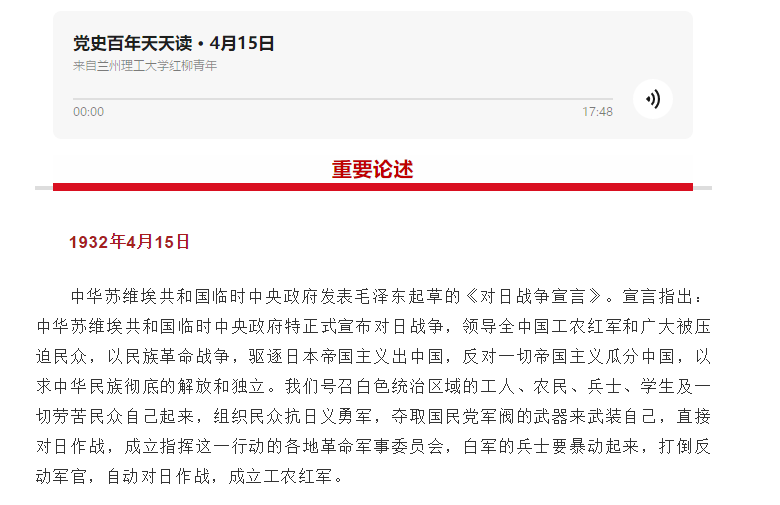 充分利用数字网络,在红柳青年微信、红柳青年网站上搭建学党史主题宣传教育阵地,推送党史百年天天读、“青年大学习·一起学党史”等专栏,督促团员青年们利用碎片化时间天天学,使学习成为一种习惯。组织“学党史铭党志,争做时代新青年”线上党史知识竞赛,检验学习效果,线上党史知识竞赛覆盖全校师生15000余名。