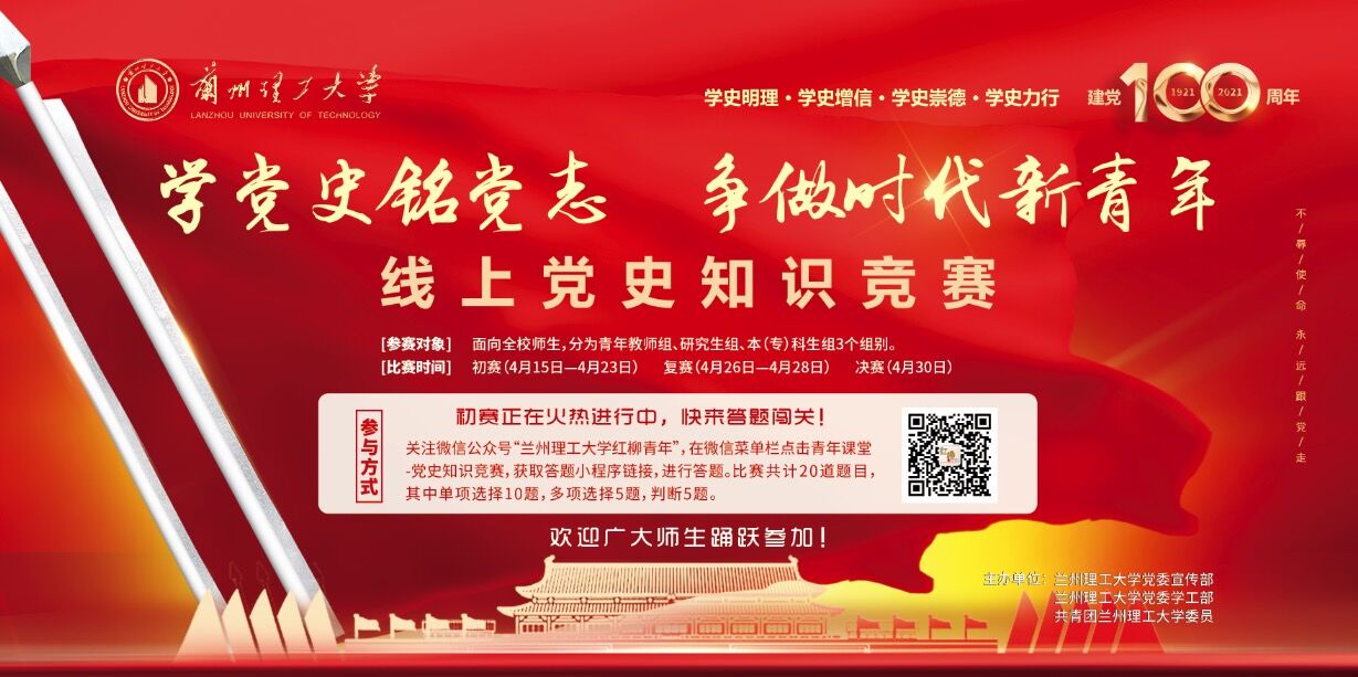 百年征程波澜壮阔,百年初心历久弥坚。兰州理工大学共青团将持续开展“学党史 强信念 跟党走”学习教育,以“严”和“实”的标准,“创新”和“走心”的形式,将党史学习教育融入育人全过程,不断提高团组织开展党史学习教育的高度、深度、广度、效度,引导团员青年学史明理、学史增信、学史崇德、学史力行,以优异成绩向建党100周年献礼。