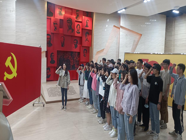 参观最后,有一面刻满名字的墙,那是惨痛而光辉的历史,也是永不凋谢的丰功伟绩,每一位参观成员都在此站立良久,缅怀英勇的先烈们。参观结束后陈冲老师带领大家举行了重温入党誓词仪式。