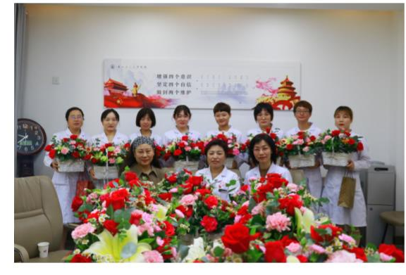 5月12日,为庆祝第110个国际护士节,校医院在三楼会议室组织召开了“传承红色基因、弘扬抗议精神,与天使携手、与健康同行”为主题的护士节座谈会。学校工会副主席冯晶晖一行三人代表学校到现场慰问,并给校医院全体护理人员送上了节日的祝福和鲜花。院长杨晓华代表医院向全院护理人员表示节日问候,祝贺护理团队在兰州市卫健委组织的护理质量技能大赛中取得了团体三等奖的好成绩,肯定了医院护理团队在常规护理工作、公共卫生及疫情防控工作中发挥的重要作用。座谈会上白衣天使们畅所欲言,讲述了在医院不同岗位的工作心得与体会,谈参与疫情防控的经历,谈应急救治患者的细节,谈圆满完成任务的自豪。护士们表示要继续传承南丁格尔精神,用“爱心、耐心、细心和责任心”践行新时代卫生健康职业精神。