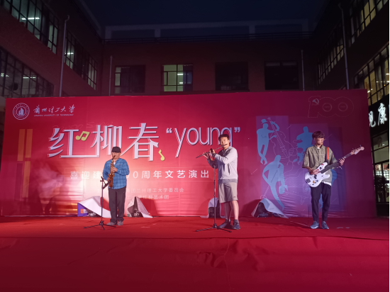 5月18日晚,校团委举办的“红柳春young”喜迎建党100周年文艺演出在彭家坪校区红柳广场举行,来自各学院的观众400余人观看了演出。