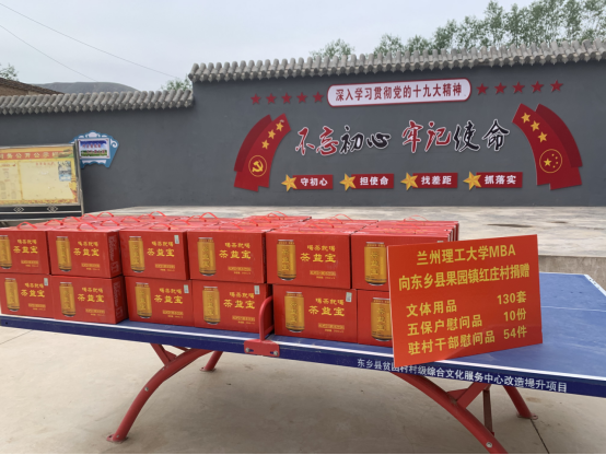 当天,来自全国的MBA同学来到兰州理工大学东乡县驻村点,由MBA校友捐赠,为兰州理工大学驻村干部们捐赠片仔癀凉茶54件,为学校所有驻村队员送去实实在在的慰问。