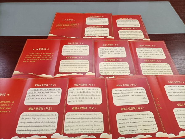 在迎接建党100周年之际,外国语学院党委开展 “共学党史坚定信仰 手写誓词重温初心”主题党日活动,学院170名党员纷纷拿起手中的笔,重温入党誓词,重忆入党初心。