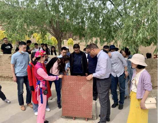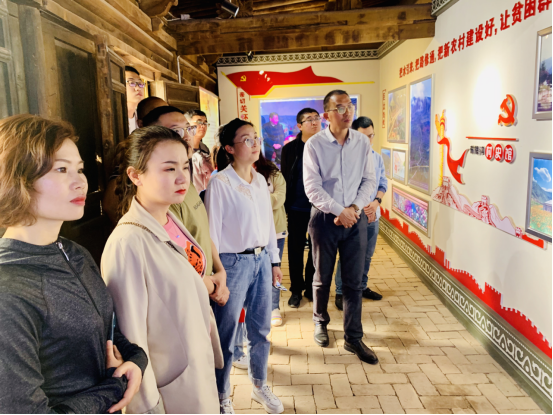 在布楞沟村史陈列馆讲解员的带领下,党员们时而驻足观看、时而热烈讨论。陈列馆用照片、文字、视频、实物等形式,集中展现了习近平总书记视察东乡时的情景。通过一张张照片、一件件文物,大家充分了解了布楞沟村的发展历程,一起追溯了布楞沟的“红色之路”。