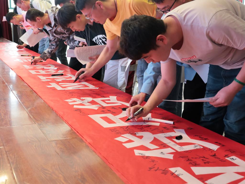 全体学生现场填写了《学生诚信承诺书》并在诚信主题横幅上开展签名活动。