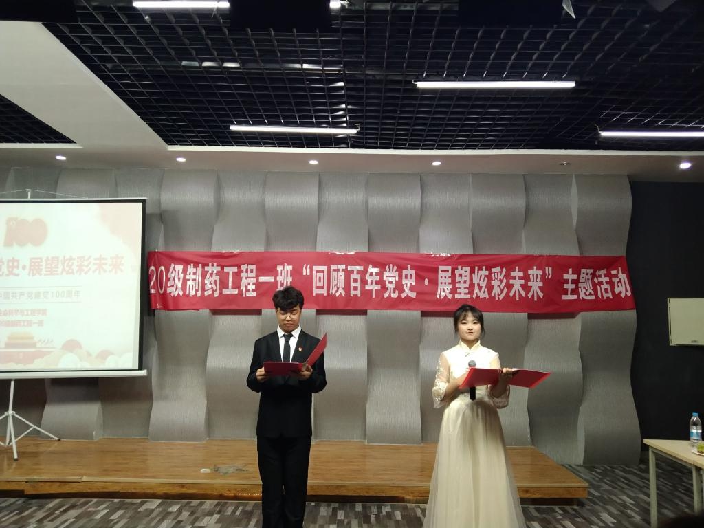 5月21日,为庆祝中国共产党建党一百周年,让同学们树立正确的人生观,价值观以及世界观,教育同学们要铭记历史,生命科学与工程学院20级制药一班,大学生活动中心举行了党史学习教育的主题班会。出席本次活动有学院党委副书记武军莉、20级制药工程一班班主任赵添堃、20级制药工程一班全体成员。