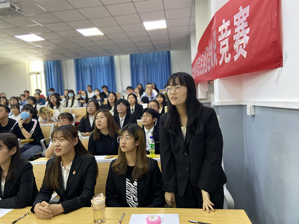 民族团结知识竞赛由学生党支部组成4个代表队参加,有必答题,抢答题和冒险题三个环节,实行分数累计制。比赛过程中各支部参赛队伍热情高涨,每个环节队员们都积极思考,配合默契,表现优异。在互动环节中,3名同学脱颖而出,凭借自己丰富的知识,赢得同学们阵阵掌声。在激烈的比赛之余,俄语本科生党总支部黄溯鑫同学为大家演唱了一首《我相信》,缓解了现场的紧张气氛。最终,研究生党支部在最后一个环节中脱颖而出,凭借高分风险题获得了本次比赛的胜利。