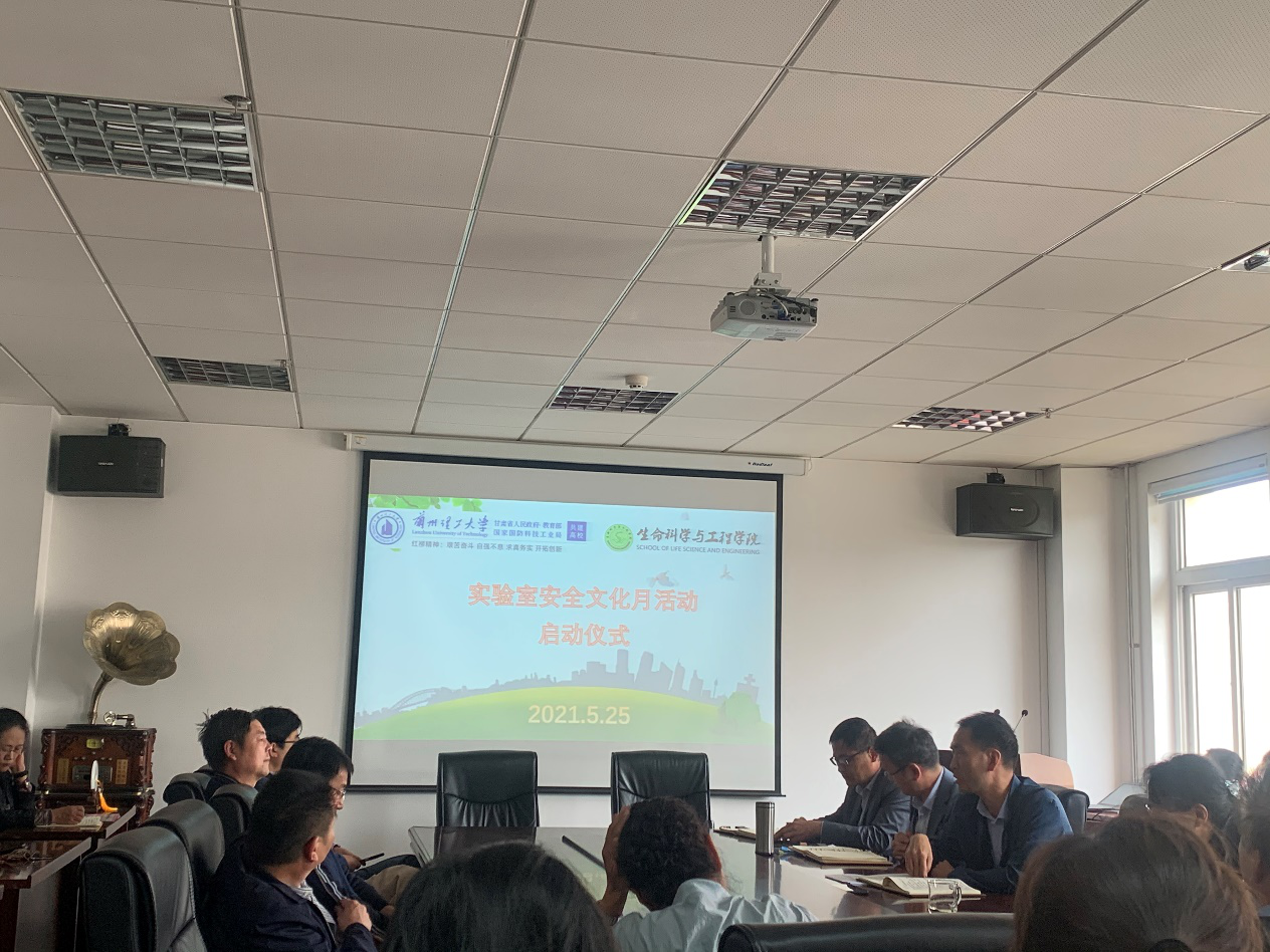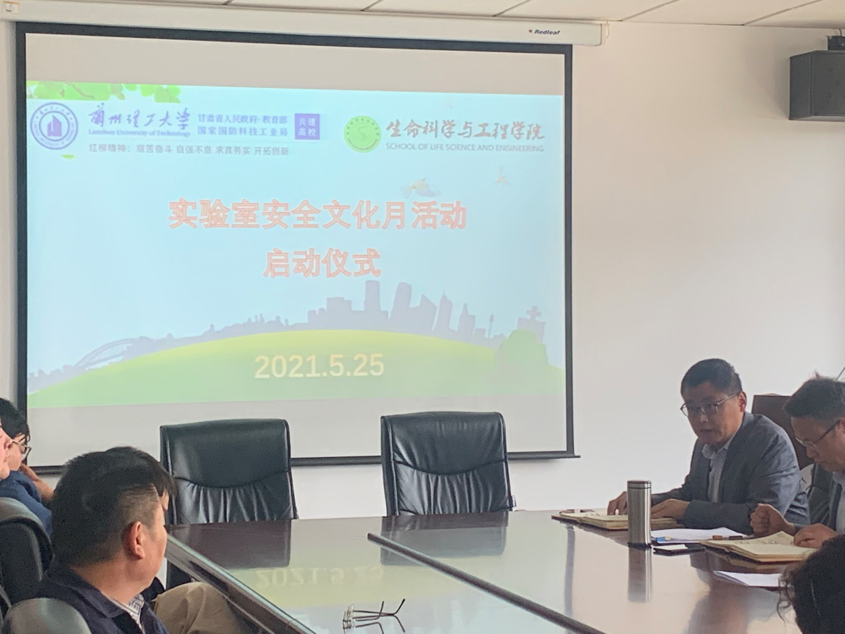 5月25日,为贯彻落实党中央、国务院、教育部关于安全工作的决策部署,着眼于加强疫情防控常态化条件下的实验室安全工作,全面弘扬实验室安全文化,加强实验室安全宣传教育,牢固树立实验室安全理念,建设以人为本的安全实验环境,提升师生安全风险防范意识和防范能力,兰州理工大学生命科学与工程学院2021年“实验室安全文化月”活动启动仪式在学院会议室举行。启动仪式由学院副院长杨明俊主持,学院全体领导班子和教师参加。