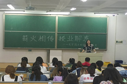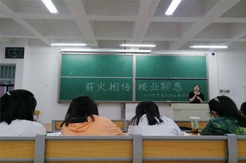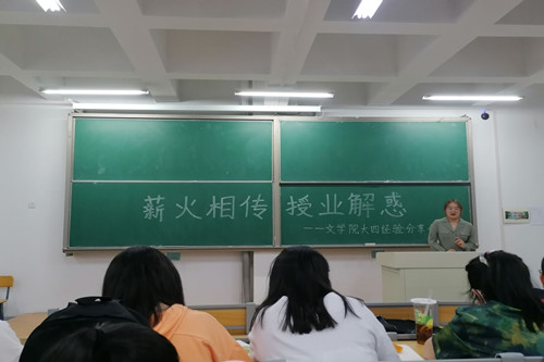 6月4日晚上,以“薪火相传,授业解惑”为主题的毕业生专业学习、考研经验和就业求职分享会在彭家坪校区集贤楼教室举行,由文学院2021届保研考研、就业优秀毕业生主讲,18、19和20级全体同学参加了活动。