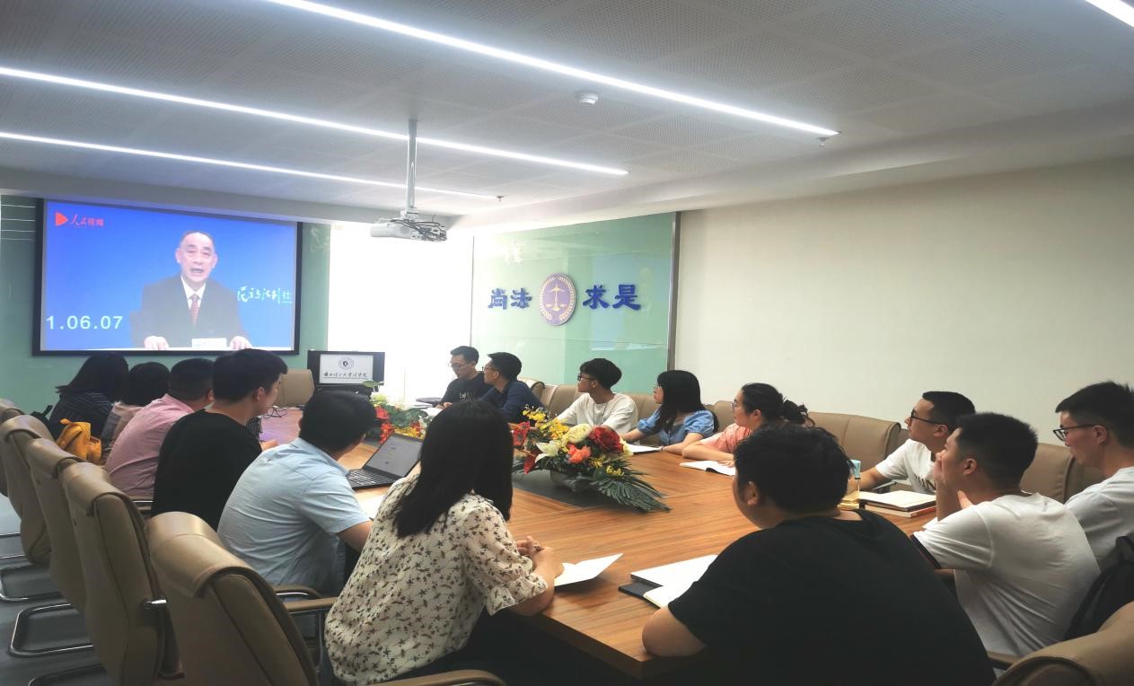 为深入学习宣传贯彻习近平法治思想,2021年“百名法学家百场报告会”法治宣讲活动中央和国家机关专场报告会,通过人民网面向全国直播。兰州理工大学法学院组织师生于6月7日下午3点准时观看。中国法学会党组书记、常务副会长陈训秋主持,中国法学会学术委员会副主任、法理学研究会会长,中国社会科学院学部委员李林做《深入学习宣传贯彻习近平法治思想》专题报告。集中观看后,院长贾小龙、穆永强副教授与学生共同结合收看专场报告会收获进行分享研讨,深入学习宣传贯彻习近平法治思想,坚定不移走中国特色社会主义法治道路,深刻领会习近平法治思想的核心要义、精神实质、丰富内涵、实践要求,在多思多想、学深悟透上下功夫,在系统全面、融会贯通上下功夫,在知行合一、学以致用上下功夫。根据学校通知安排,法学院当天组织师生分别以会议室集中观看、登录人民网主页“2021年‘双百’活动中央和国家机关专场报告会”“党史学习教育”微信公众号移动端入自主观看方式收看网络直播。