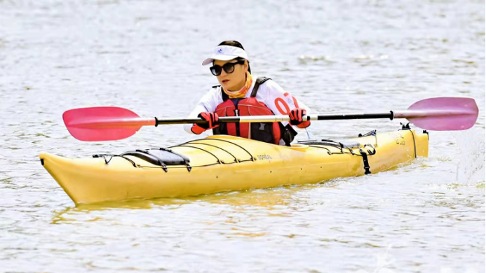 作为运动小白,首次报名参加皮划艇比赛,家人、朋友包括我自己都觉得不可思议。然而经过短暂的训练和一天的比赛后,让我对皮划艇的AB面有了全新的认知。先说独自一人在湖面练习时的A面,微风拂面,清波荡漾,体内产生的内啡肽迅速流淌,安宁而平静。而皮划艇的赛场则是完全不同的B面。在这里,有百舸争流的激荡,奋力拼搏的勇气,在这里,没有相互抱怨只有彼此鼓励。在参加的双人比赛中,队友鼓励我尽情享受赛事,让我体会到了皮划艇的浮士德精神;当我单人比赛无法控桨控方向时,我听到的是远在岸边队友的呐喊助威,那是声音的力量,也是一份永远的警醒:遇到困难,找准方向,不言放弃!我想这就是兰鲸队的团结奋进,这就是兰理人的红柳精神!