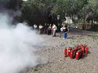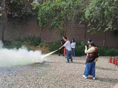 启动仪式结束之后,联合我校保卫处开展防火灭火应急演练。学院领导、教师和学生积极参与演练。实训演练活动进一步完善突发事故的预报、预警、预防和应急救援工作,促进综合应急能力的提高。