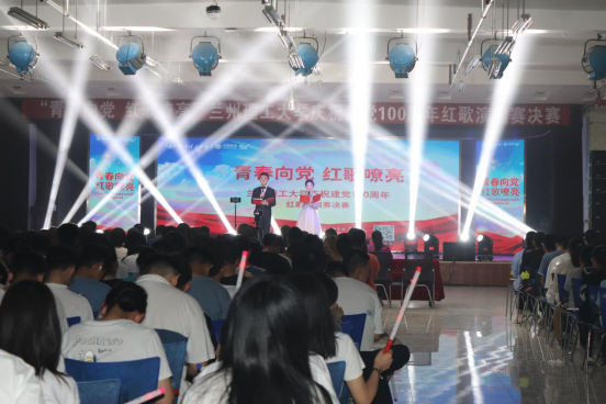 为热烈庆祝中国共产党成立100周年,重温红色经典,走进光荣岁月,用歌声歌颂中国共产党百年来的光辉历程和伟大成就,弘扬爱党、爱国、爱校精神,6月8日晚19点30分,我校“青春向党 红歌嘹亮”兰州理工大学庆祝建党100周年红歌演唱赛决赛在彭家坪校区大学生活动中心三楼举行,学校400余名师生共同观看了这场红歌赛。