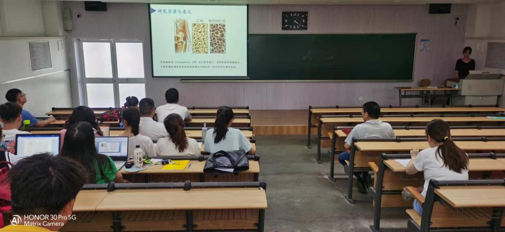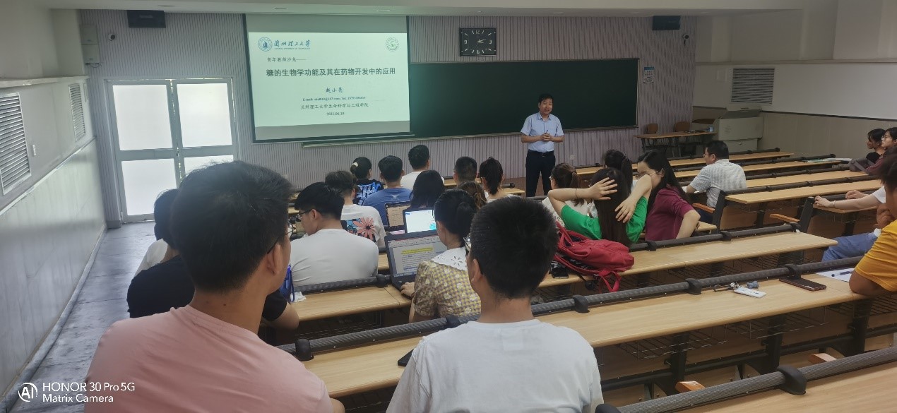 本次论坛上进行分享的是赵小亮博士和任莉研究生,他们报告的主题分别是“糖的生物学功能及其在药物开发中的应用”、“木香烃内酯对骨髓间充质干细胞成骨性分化的影响及其机制研究”。两位主讲人根据自己的科研成果和研究内容由点及面、由表及里的分析,老师们认真聆听,同学们聚精会神。在交流提问环节中,老师同学们对木香烃内酯对干细胞的成骨性分化,木香烃内酯通过何种机制对骨髓干细胞分化的影响,糖在生命体内的修饰及功能作用,糖药物在生活中的应用展开了激烈的讨论,讨论过程中得出了糖基化修饰不仅限于细胞蛋白质,核酸中也存在着糖基化修饰的结论。