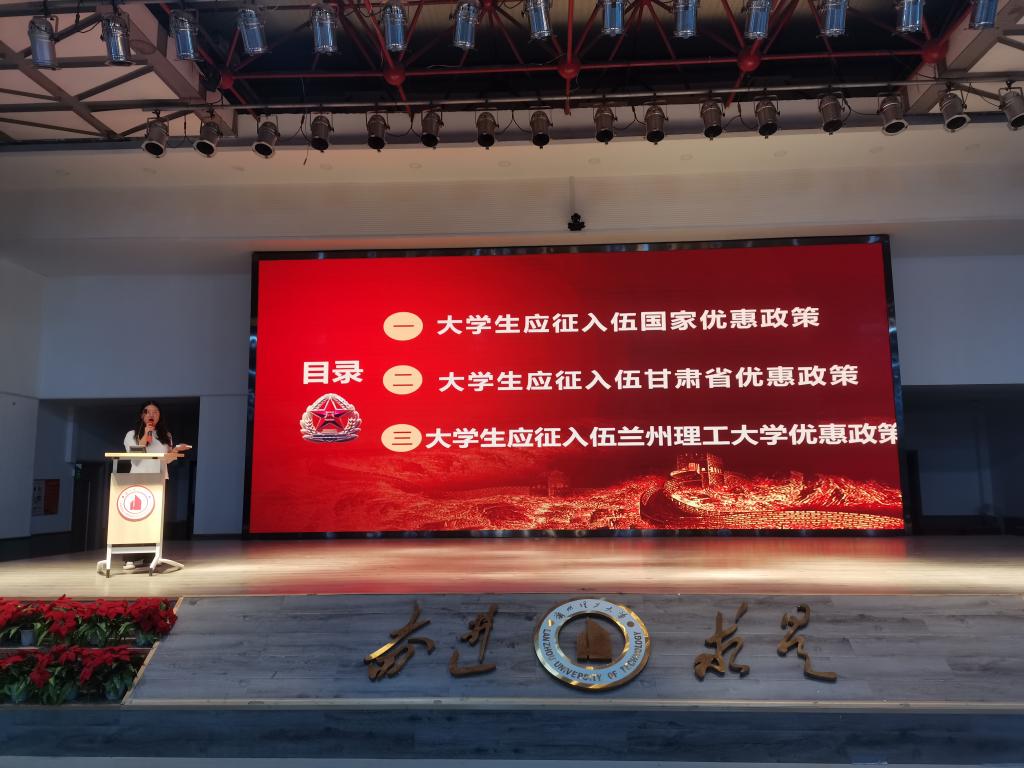 活动开始,由主持人带领同学们观看爱国视频,通过视频的形式让同学们明白现在的和平盛世是无数革命军人用鲜血和生命换来安定。随后,我院2018级视觉传达设计专业退伍大学生魏坤源给同学们分享了他的行伍生活,讲述了流血流汗不流泪、为家为民为祖国的伟大军人精神,“光荣在于平淡,艰巨在于漫长”,他鼓励在校大学生志愿投身军营,心系家国。最后,宋美瑾老师从国家、甘肃省、兰州理工大学三方面为同学们讲述了大学生应征入伍的优惠政策,鼓励同学们积极入伍参军,军营是一座锤炼精英的大熔炉,当兵是无愧于青春的正确选择,是有志青年的光荣梦想。