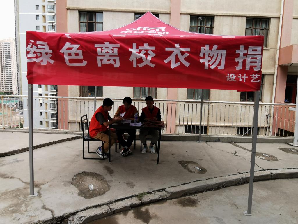 6月16日,设计艺术学院乐翼青年志愿服务队在兰州理工大校本部16号楼门前开展“绿色离校,传承爱心”志愿捐衣捐物活动。