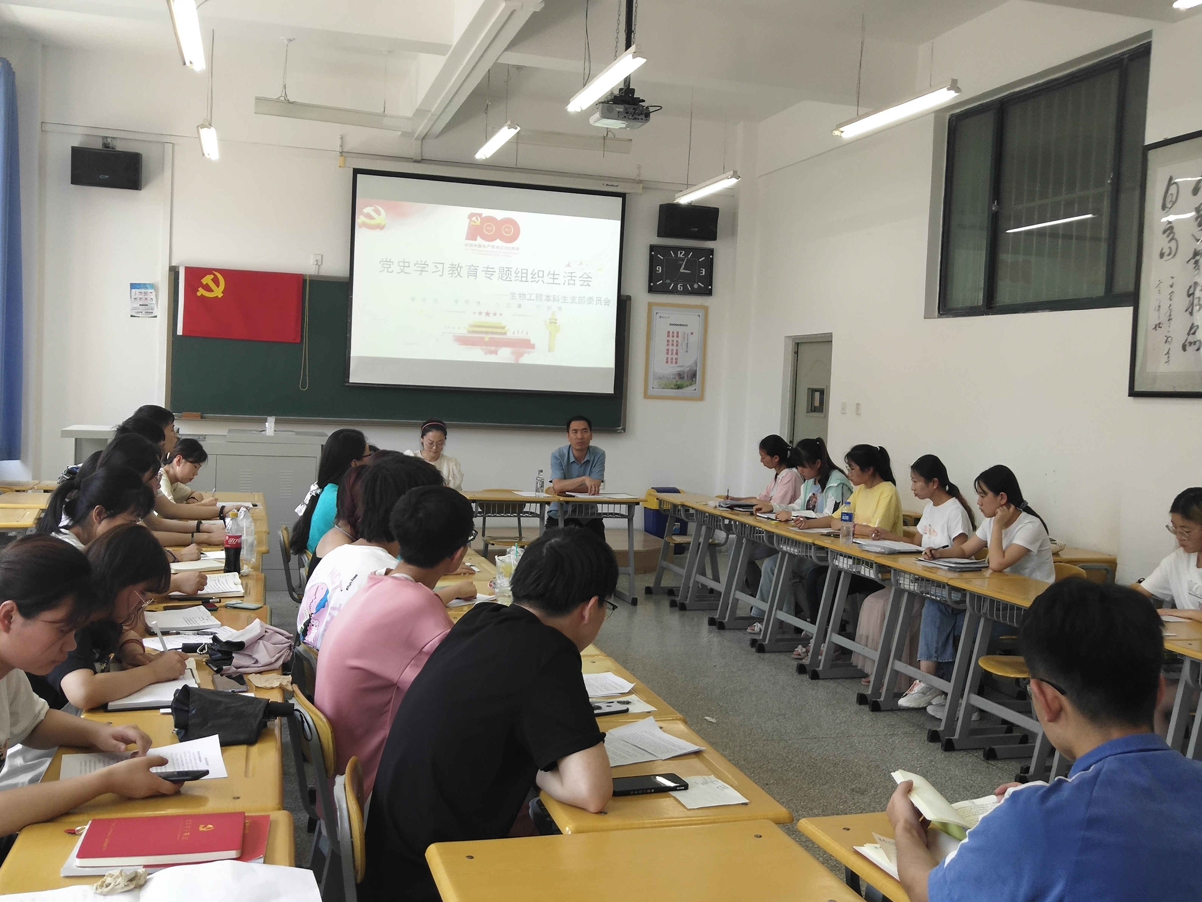 为有效推动党史学习教育深入开展,切实提高学习教育的针对性和实用性,扎实推进党史学习教育走深走实,确保党史学习教育取得真正实效,2021年7月13日下午,生物工程本科生党支部在彭家坪校区四号教学楼203教室开展了以“学党史、悟思想、办实事、开新局”为主题的专题组织生活会。生命学院党委书记陈永泰以普通党员的身份参加了此次组织生活会,会议由支部书记代莎主持。