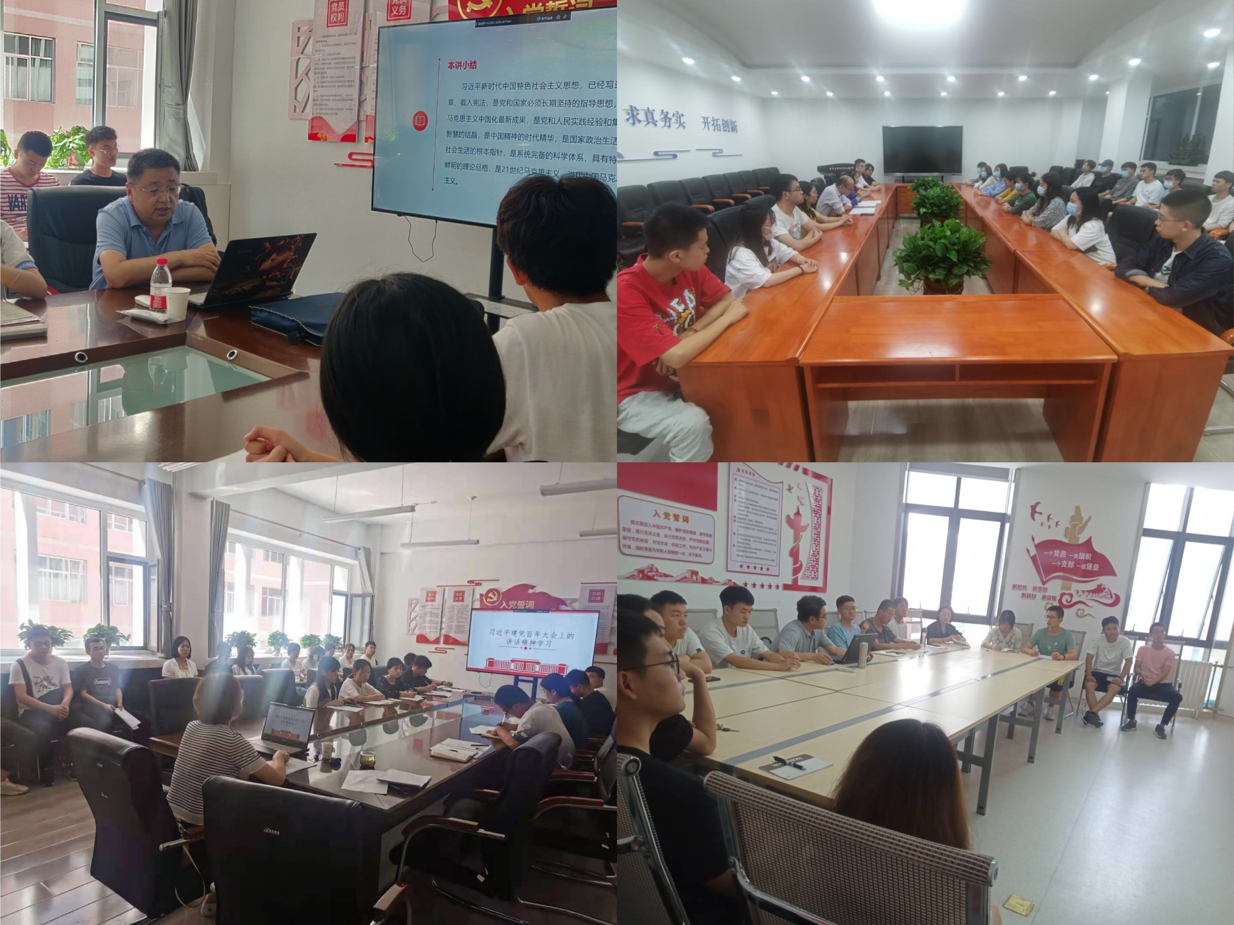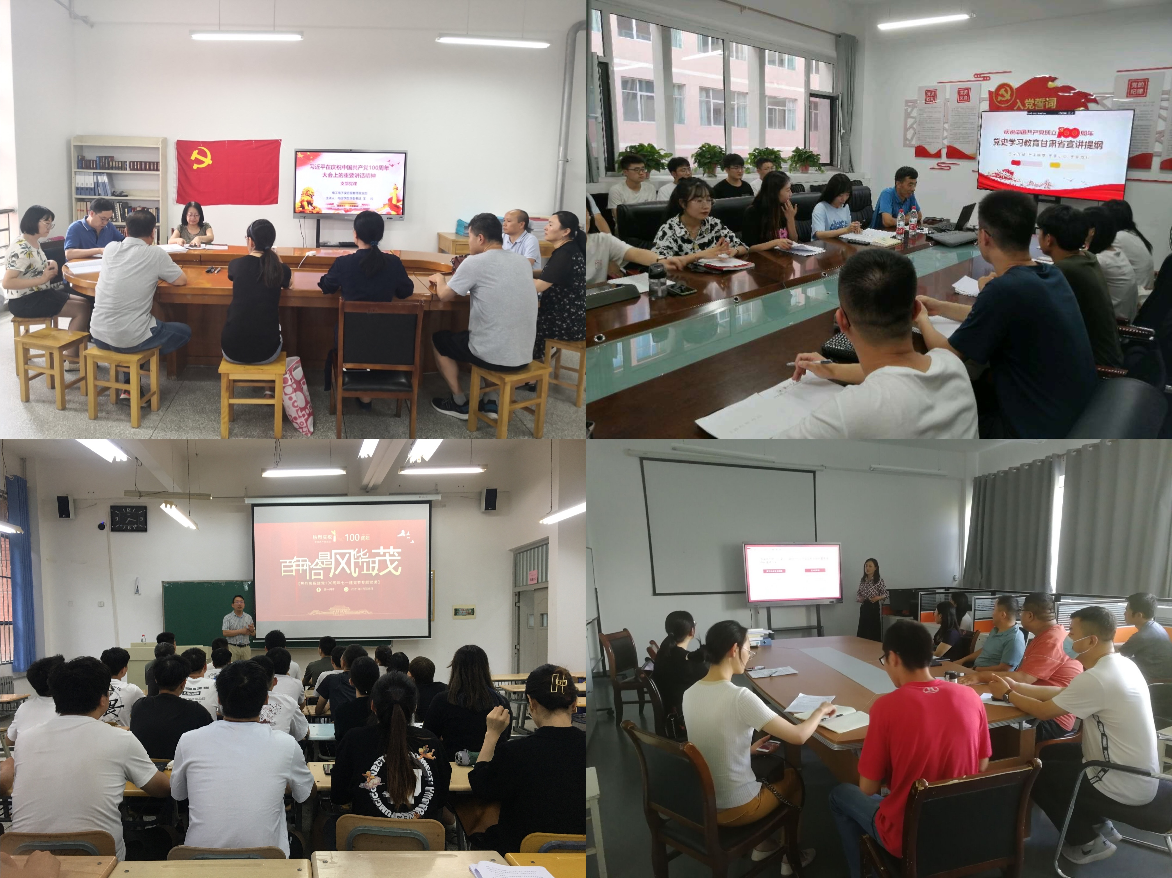 各基层党支部书记结合观看主题视频、读原文等方式围绕学习贯彻习近平总书记“七一”重要讲话精神、“四史”教育、《论中国共产党历史》、习近平总书记在“七一勋章”颁授仪式上的重要讲话精神等内容,带领支部全体党员认真学习贯彻习近平总书记在党史学习教育动员大会、“七一勋章”颁授仪式和庆祝中国共产党成立100周年大会上的重要讲话精神,引导广大党员、师生学史明理、学史增信、学史崇德、学史力行。坚守马克思主义信仰,坚定共产主义远大理想,坚持中国特色社会主义道路自信、理论自信、制度自信、文化自信,在党的领导下实现中华民族伟大复兴。