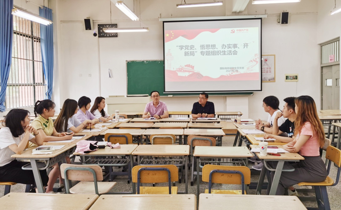 2021年7月15日下午,经济管理学院国际商务研究生党支部在彭家坪校区召开了“学党史、悟思想、办实事、开新局”专题组织生活会,学校后勤管理处党总支郑军书记作为联系本支部的中层干部参加了会议。
