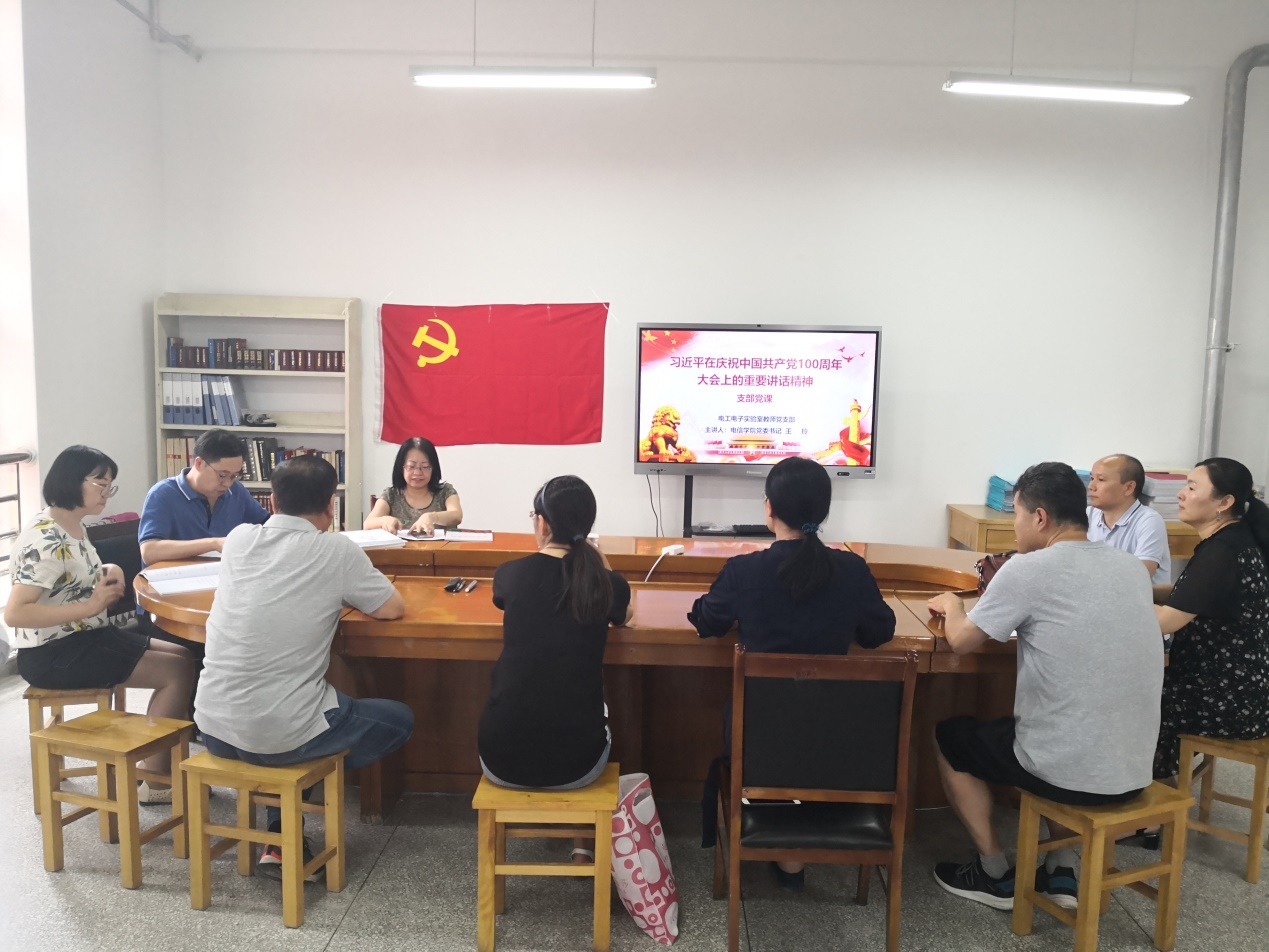 2021年7月8日,电信学院电工电子实验室教师党支部在田家炳实验大楼B210办公室开展了“学党史、悟思想、办实事、开新局”专题党课,由电信学院党委书记王玲主讲,支部书记丁守成主持了会议。