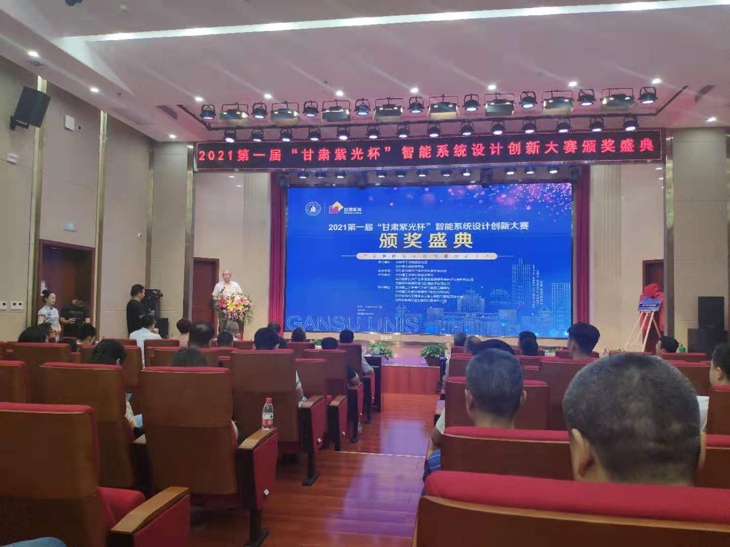 7月17日,由兰州高新区主办的2021第一届“甘肃紫光杯”智能系统设计创新大赛决赛暨颁奖盛典在甘肃紫光公司举行。这也是我校电信学院承办的首届“甘肃紫光杯”智能系统设计创新大赛,我校研究生院院长苏建宁、电信学院院长陈伟、教务处副处长冯宜伟等领导出席颁奖盛典。