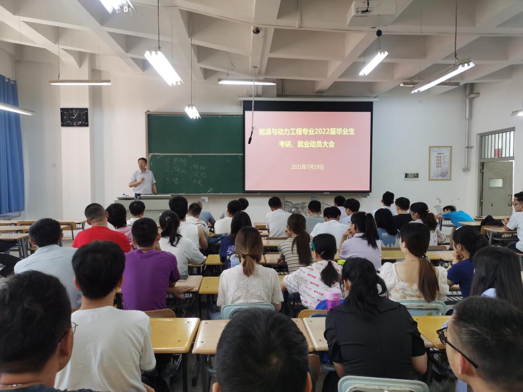 为了持续推进“我为师生办实事”活动走深走实,引导2022届毕业生做好职业规划,认清就业趋势,树立正确的考研与就业观念,准确定位,明确未来发展方向。7月19日-21日,能动学院在彭家坪校区1#106、励志1C202等教室分专业召开了2022届毕业生考研、就业动员大会,各系主任、辅导员、班主任及2018级全体学生参加了本次会议,会议由学院党委副书记赵炜主持。