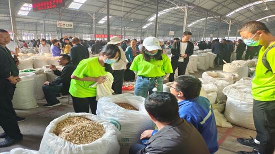7月29日早上八点队员到达交易中心后,首先向交易中心的工作人员说明来意,咨询了药材销售的有关信息,了解到,交易中心为线下交易平台,农民将自己种植的药材制作成切片,做成半成品,带到交易中心等待全国各地药商前来验货收购,从中收购的中药材会经药商销往全国各地。由于中药材本身具有特殊性,极大地制约了中药材的线上出售发展,无法让农民直接进行自产自销。