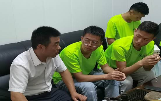图为队员与园区负责人在休息室讨论乡村发展 王开琦 摄