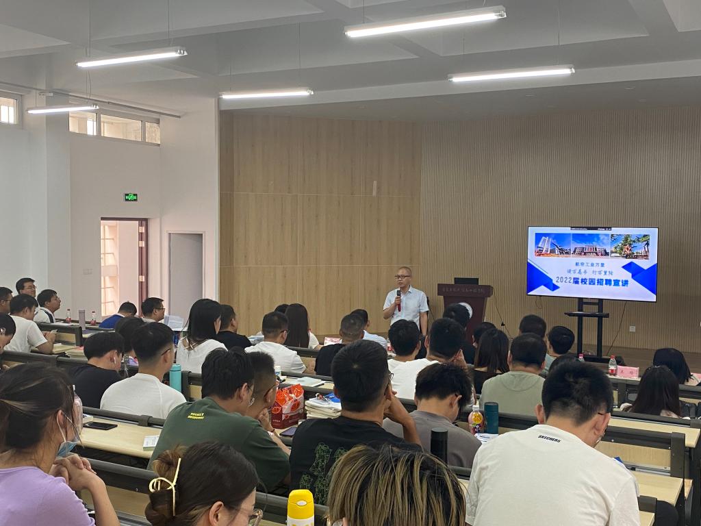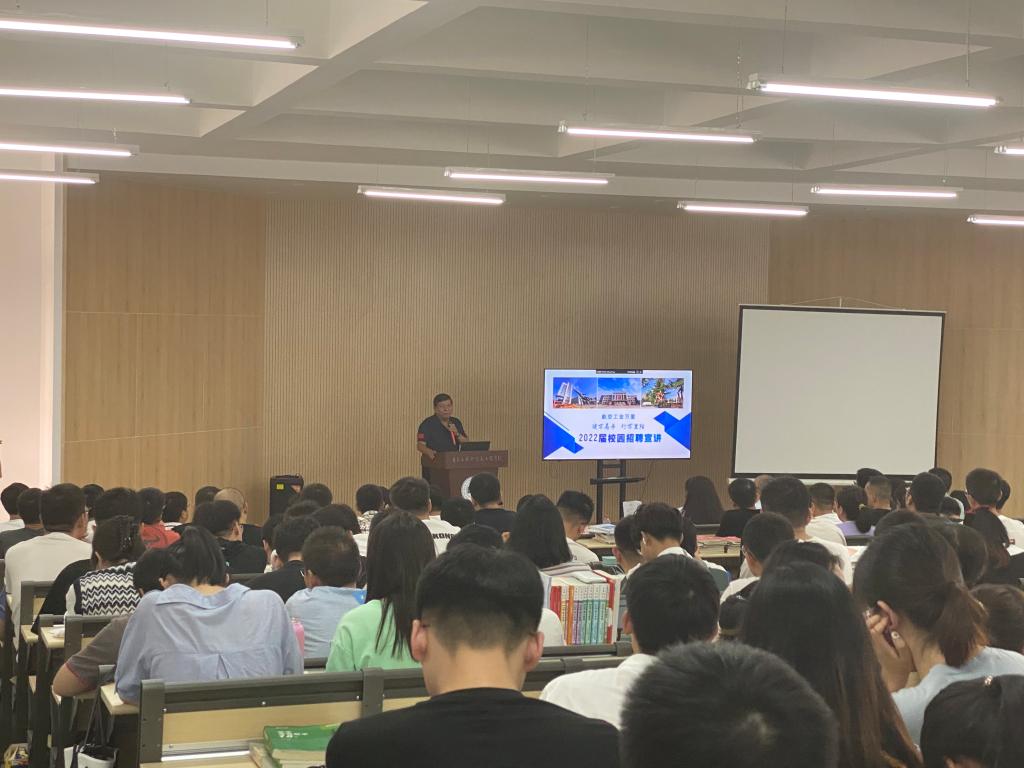 电信学院院长陈伟代表学院感谢兰州万里航空机电有限责任公司对电信学院就业工作的大力支持,并结合自己经验向大家讲解了公司的综合发展实力及就业前景,希望广大毕业研究生结合自身实际、慎重考虑,珍惜就业机会。