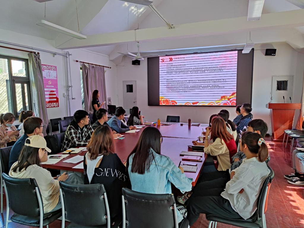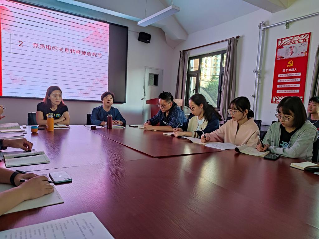 会上,杨利玲带领全体参会人员学习《中国共产党党徽党旗条例》,要求各支部要认真学习领会《条例》精神,引导同学们正确认识党徽党旗的深刻内涵,自觉规范使用党徽党旗,并强调了支委工作的重要性和意义性,希望学院党总支所有支委可以各司其职、互相配合、努力奉献、严谨工作,持续为党支部、党员服务,切实发挥党员先锋模范作用。周佩老师从“三会一课”“党员发展”“党员教育与考核”三大模块,深入细致地讲解了支部日常工作开展的要求,与会人员对党员发展流程、党员日常教育与志愿服务、支部日常工作纪律等有了更加深刻的认识。