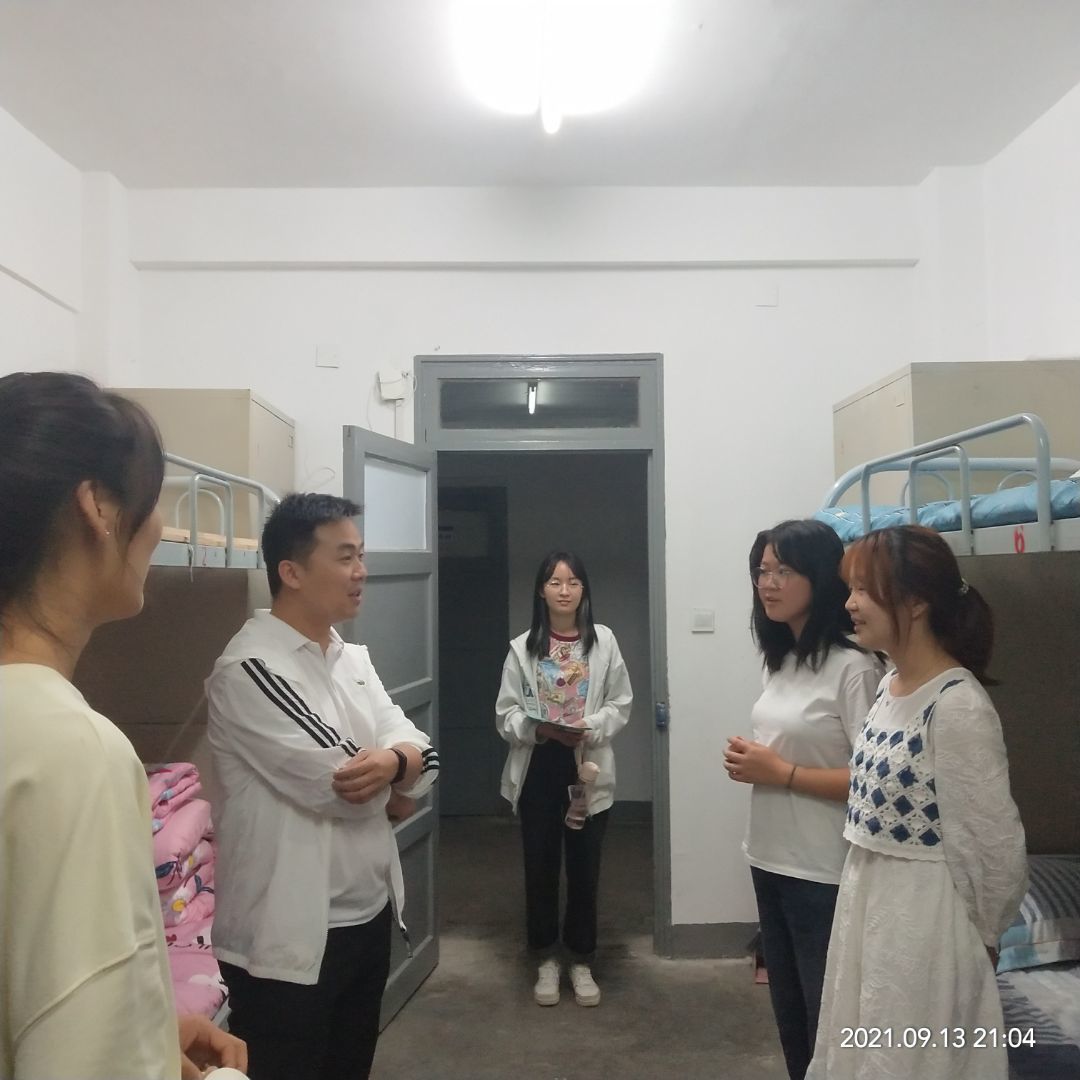 班会结束后,孙伯禄老师同刘光桥、马进孝,军训负责人江涛涛、王婷分别至2021级新生宿舍看望了同学们,并一再强调要注意宿舍安全,希望同学们建立良好的宿舍关系和宿舍文化,勉励同学们积极进取,为自己的美好未来早做准备,及早谋划。
